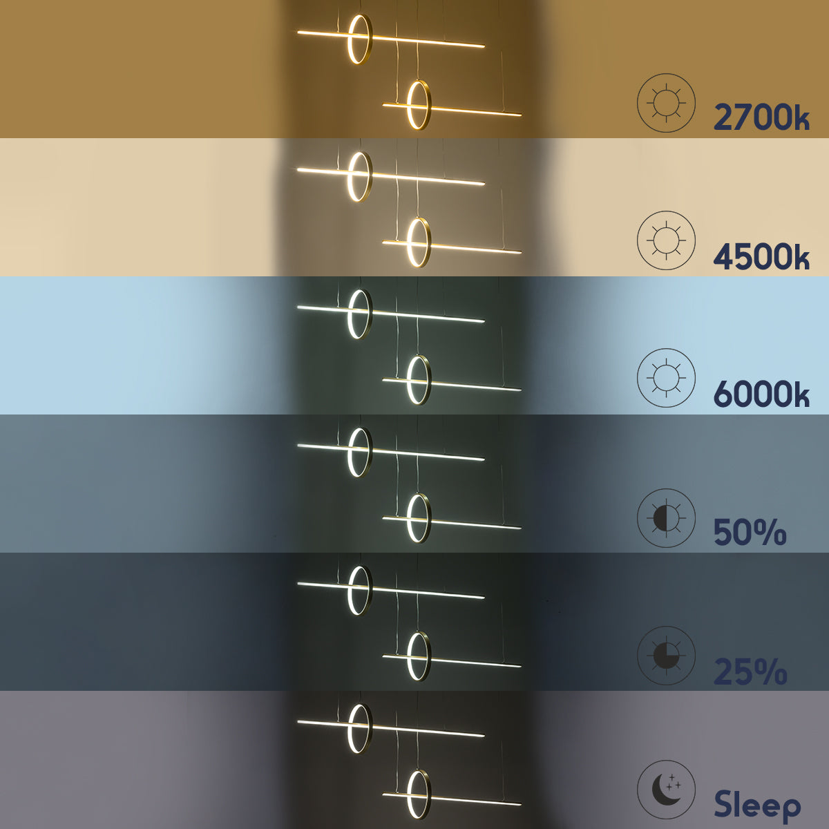 GLOBOSTAR® LINEARE 61291 Μοντέρνο Κρεμαστό Φωτιστικό Οροφής LED 67W 7504lm 300° AC 220-240V IP20 Ρυθμιζόμενο Λευκό CCT με Χειριστήριο από 2700K έως 6000K Dimmable - Lumileds SMD Chip - Χρυσό Βούρτσας - Μ130 x Π25 x Υ60cm - 3 Χρόνια Εγγύηση