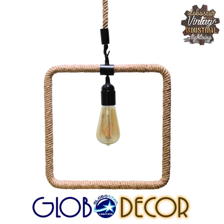 • Τεχνοτροπία Φωτιστικού: Μεταλλικό με Μπεζ Σχοινί