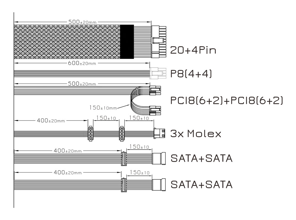 DC output +5VSB/2.5A: Maximum current output 12.5W