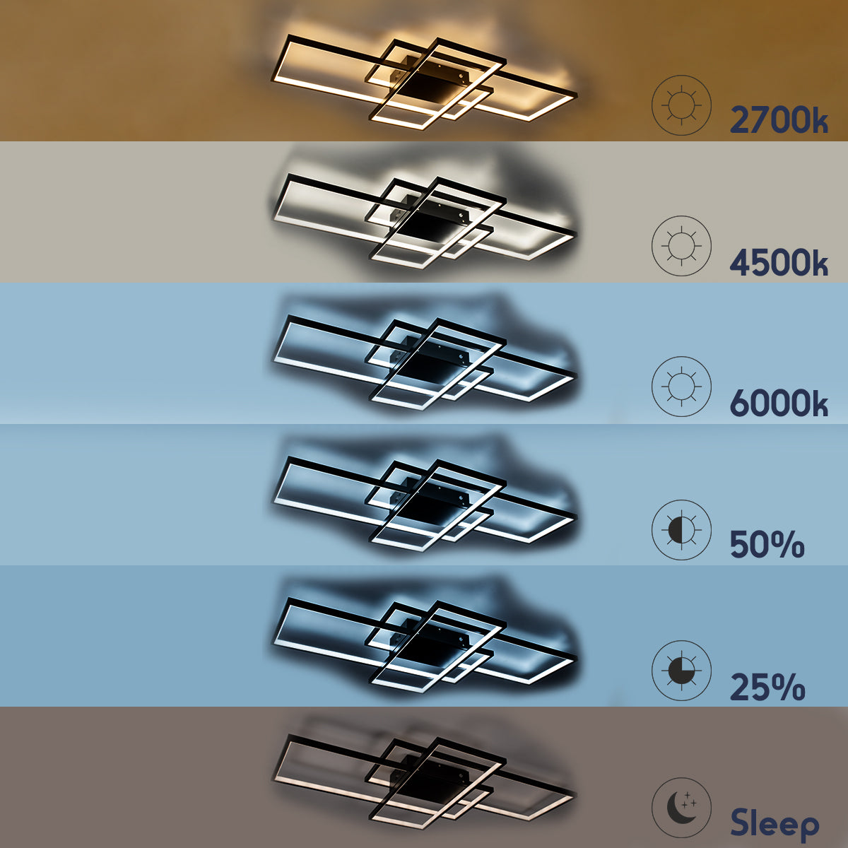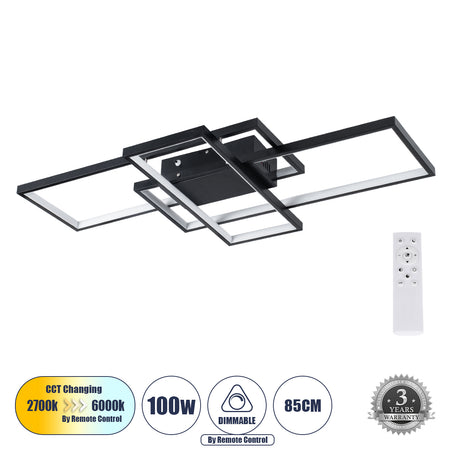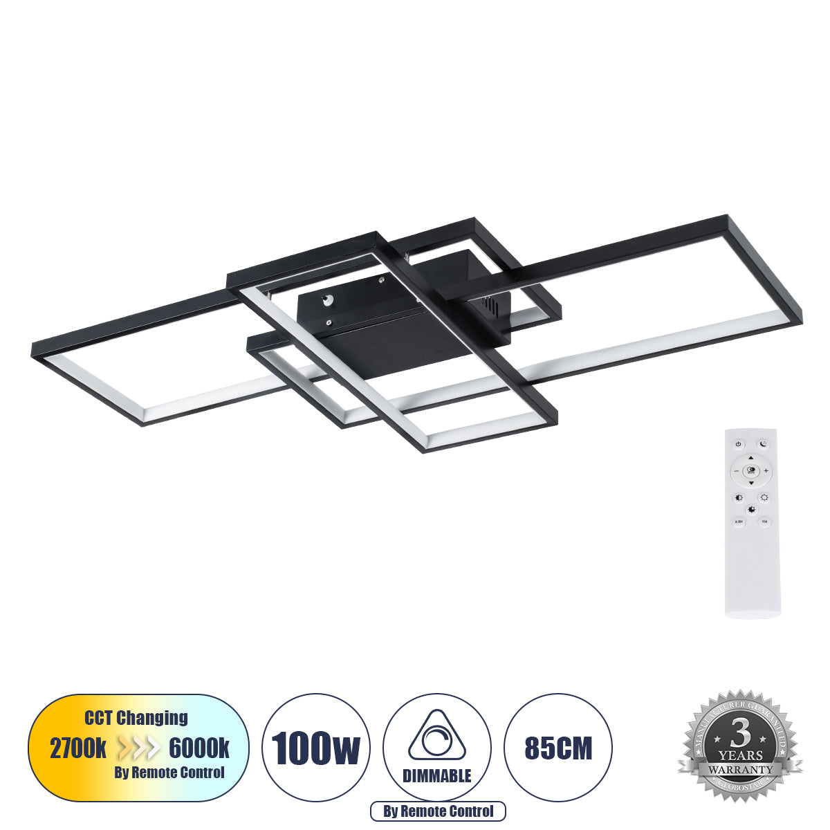 GLOBOSTAR® QUADRA 61385 Μοντέρνο Φωτιστικό Οροφής LED 100W 12000lm 120° AC 220-240V IP20 Ρυθμιζόμενο Λευκό CCT με Χειριστήριο από 2700K έως 6000K Dimmable - Lumileds SMD Chip - Μαύρο Ματ - Μ85 x Π45 x Υ9cm - 3 Χρόνια Εγγύηση