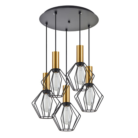 SE21-GM-4-5BL-GR1 ADEPT TUBE Gold Matt Pendant Black Metal Grid+