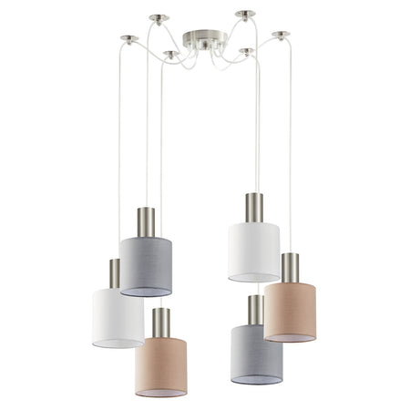 SE21-NM-4-BL6-SH12 ADEPT FLEX Nickel Matt Pendant White, Grey, Brown Fabric Shade+