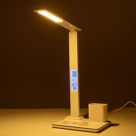 GLOBOSTAR® ZENTIME 76554 Μοντέρνο Επιτραπέζιο Φωτιστικό Γραφείου με Ασύρματη Φόρτιση 15W 3A & Ψηφιακό Ρολόι LED 3.5W 350lm 120° DC 5V με USB-C IP20 Ρυθμιζόμενο Λευκό CCT με Αφή 2700K/4500K/6000K Dimmable - Sanan SMD Chip - Μαύρο - Μ19.5 x Π14.5 x Υ38.8...