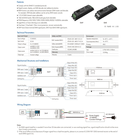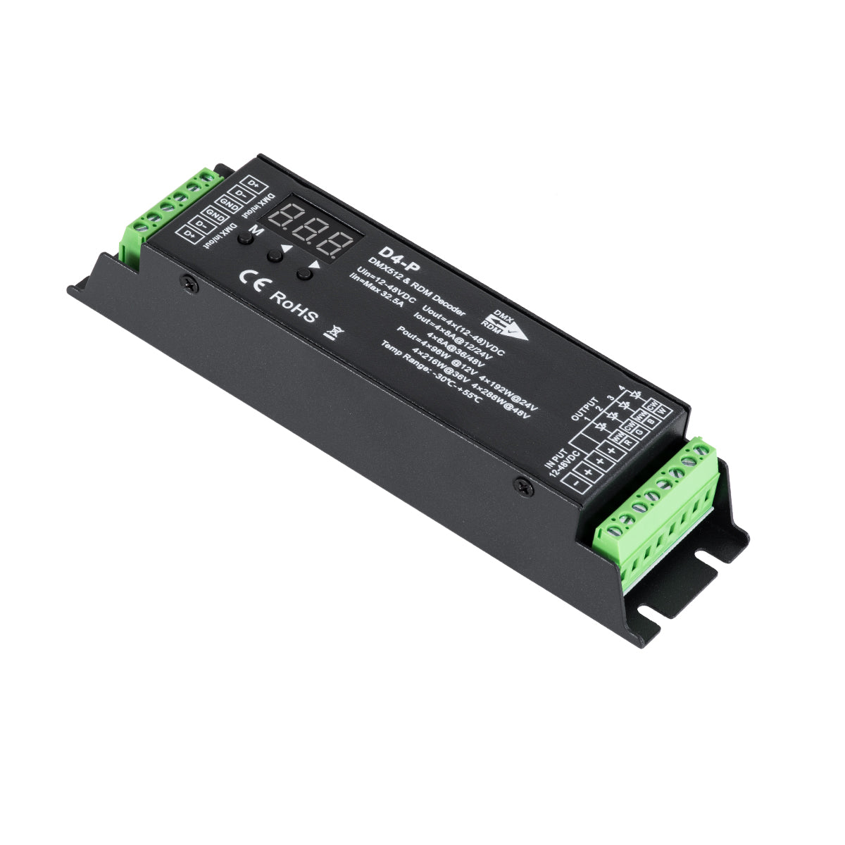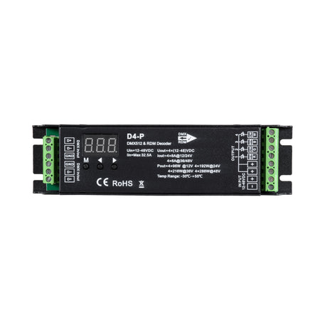 GloboStar® 70669 D4-P SKYDANCE DC DMX & RDM Dimmer High Speed Controller / Decoder 4 Καναλιών DC 12-48V 4 x 8A 384W - Max 32.5A 1152W - IP20 Μ17.5 x Π4.5 x Υ2.8cm - 5 Years Warranty