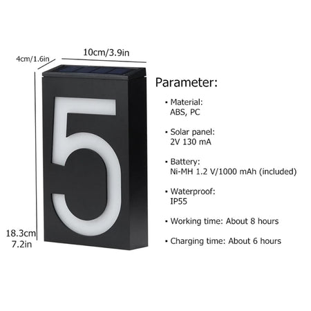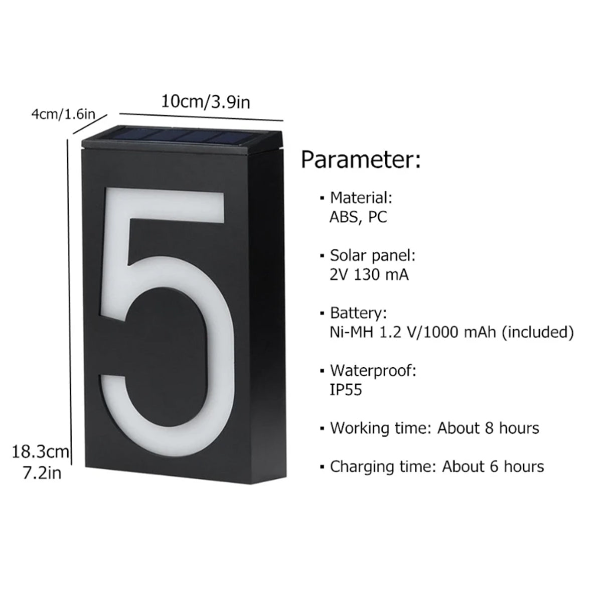 GloboStar® 71510 Αυτόνομο Ηλιακό Φωτιστικό LED SMD 1W 100lm με Ενσωματωμένη Μπαταρία 1000mAh - Φωτοβολταϊκό Πάνελ με Αισθητήρα Ημέρας-Νύχτας για Αρίθμηση Δρόμου με Αριθμό 0 Αδιάβροχο IP55 Ψυχρό Λευκό 6000K