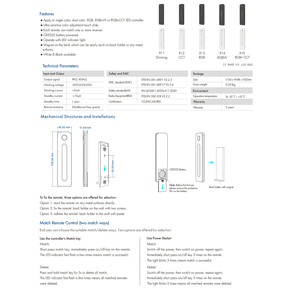 GLOBOSTAR® SKYDANCE-R11 71572 RF Ασύρματο Χειριστήριο Αφής 1 Group για όλα τα Μονόχρωμα SKYDANCE Controller - DC 3V 1 x CR2032 IP20 - RF2.4Ghz - Μ14 x Π3.5 x Υ1.1cm - 5 Χρόνια Εγγύηση