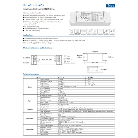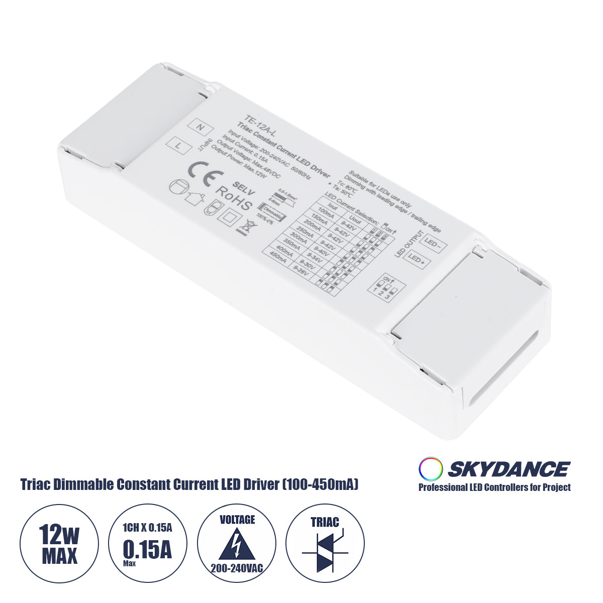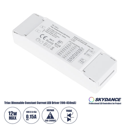 GloboStar® 73132 TE-12A-L SKYDANCE AC Triac Dimmable Constant Current LED Driver 1 Κανάλι AC 200-240V 1 x 0.15A 12W - Max 0.15A 12W - IP20 Μ11.1 x Π3.7 x Υ2cm - 5 Χρόνια Εγγύηση