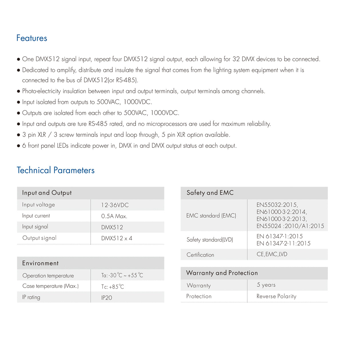 Product Category - Κατηγορία/Τύπος Προϊόντος : High Speed DMX Splitter Signal Amplifier - Ενισχυτής Σήματος DMX Υψηλής Ταχυτήτας