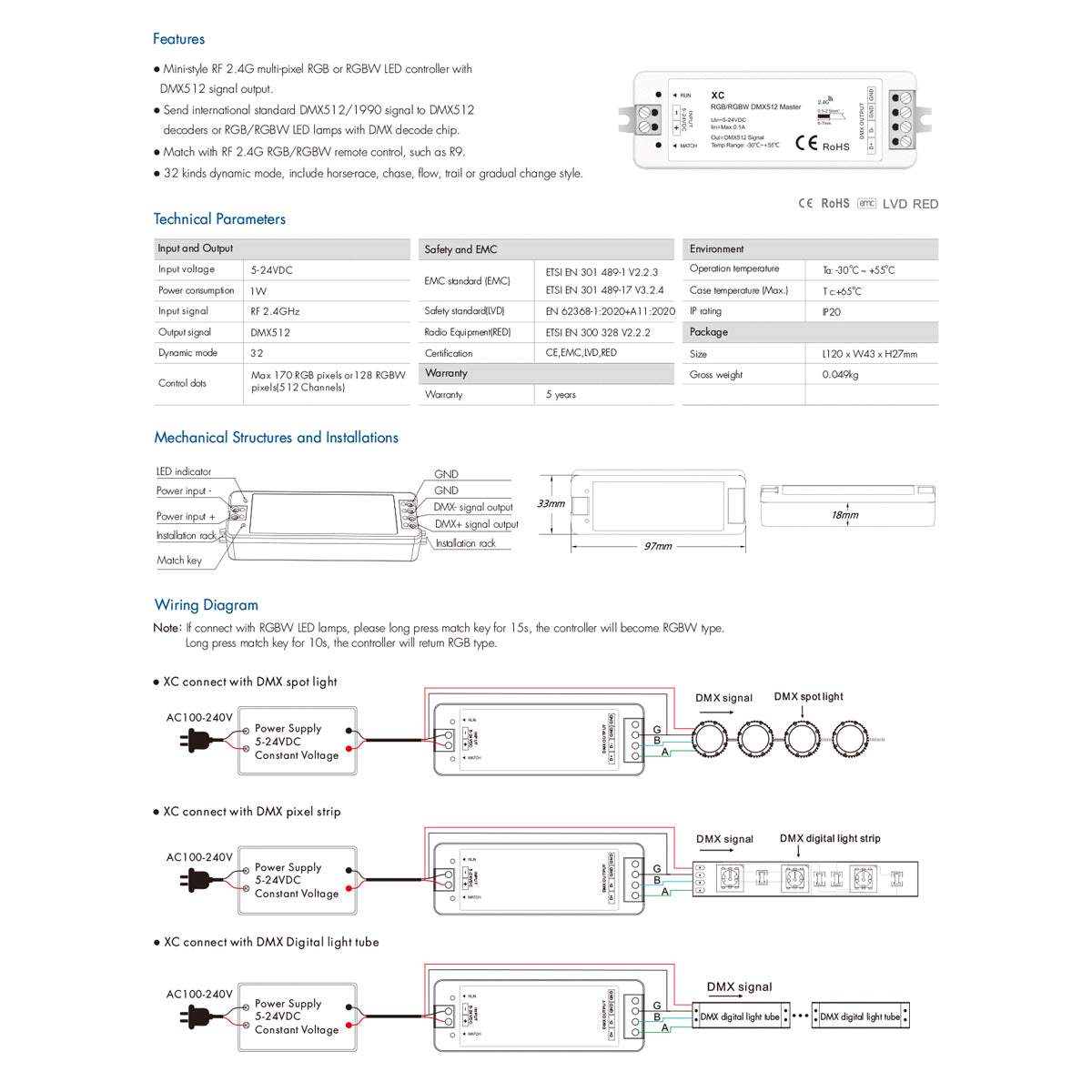 GloboStar® 73157 XC SKYDANCE DC RF 2.4Ghz DMX512 Master Digital DC 5-24V - IP20 Μ10.5 x Π3.5 x Υ2cm - 5 Χρόνια Εγγύηση