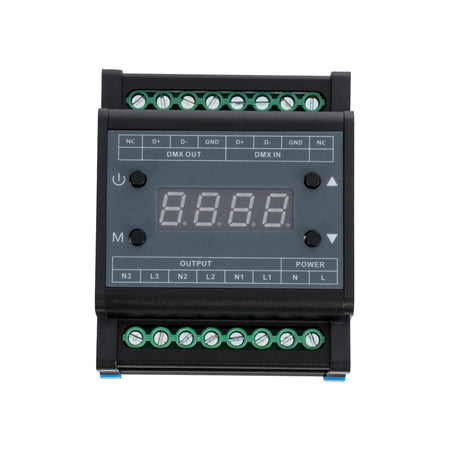 GloboStar® 73372 AC Triac DMX Dimmer Din Rail Ράγας 3 Καναλιών AC 100-240V 3 x 1A 220W - Max 3A 660W - IP20 Μ8 x Π9 x Υ6cm - 5 Years Warranty