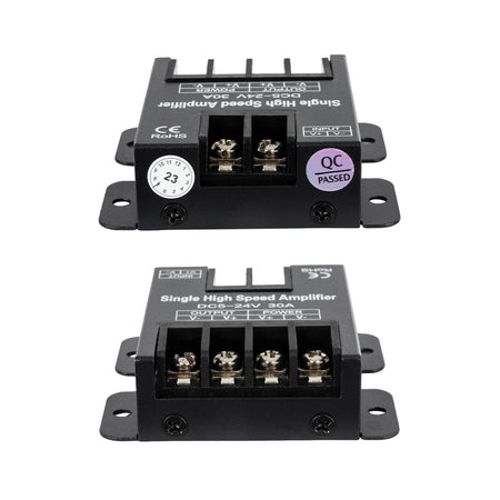 GloboStar® 73396 DC Power & Signal High Speed Amplifier Ενισχυτής Ισχύος & Σήματος Υψηλών Ταχυτήτων 1 Καναλιού DC 5-24V 1 x 30A 360W - Max 30A 360W - IP20 - Single Color - Μ6.3 x Π6.7 x Υ2cm - 2 Χρόνια Εγγύηση