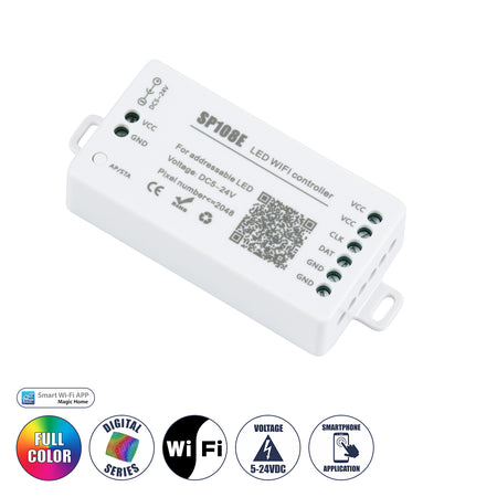 GloboStar® 73409 SP108E Ασύρματος WiFi LED FULL COLOR Magic Digital Pixel Controller iOS/Android για LED Digital Πολύχρωμα και Μονόχρωμα Προϊόντα DC 5-24V 1 x 2048 IC Max