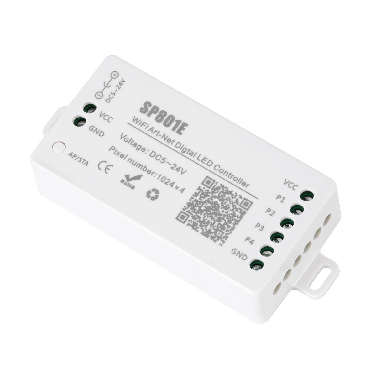 GloboStar® 73415 SP801E Ασύρματος WiFi Art-Net LED FULL COLOR Magic Digital Pixel Controller iOS/Android για LED Digital Πολύχρωμα και Μονόχρωμα Προϊόντα DC 5-24V 4 x 1024 IC Max