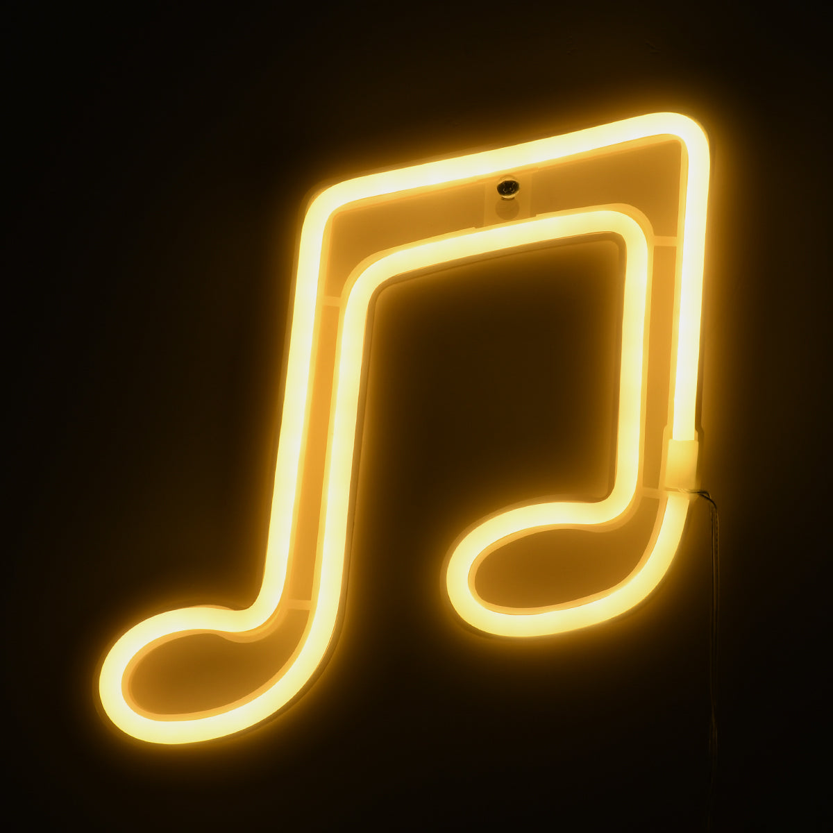 GloboStar® 78568 Φωτιστικό Ταμπέλα Φωτεινή Επιγραφή NEON LED Σήμανσης MUSIC NOTE 5W με Καλώδιο Τροφοδοσίας USB - Μπαταρίας 3xAAA (Δεν Περιλαμβάνονται) - Θερμό Λευκό 2700K