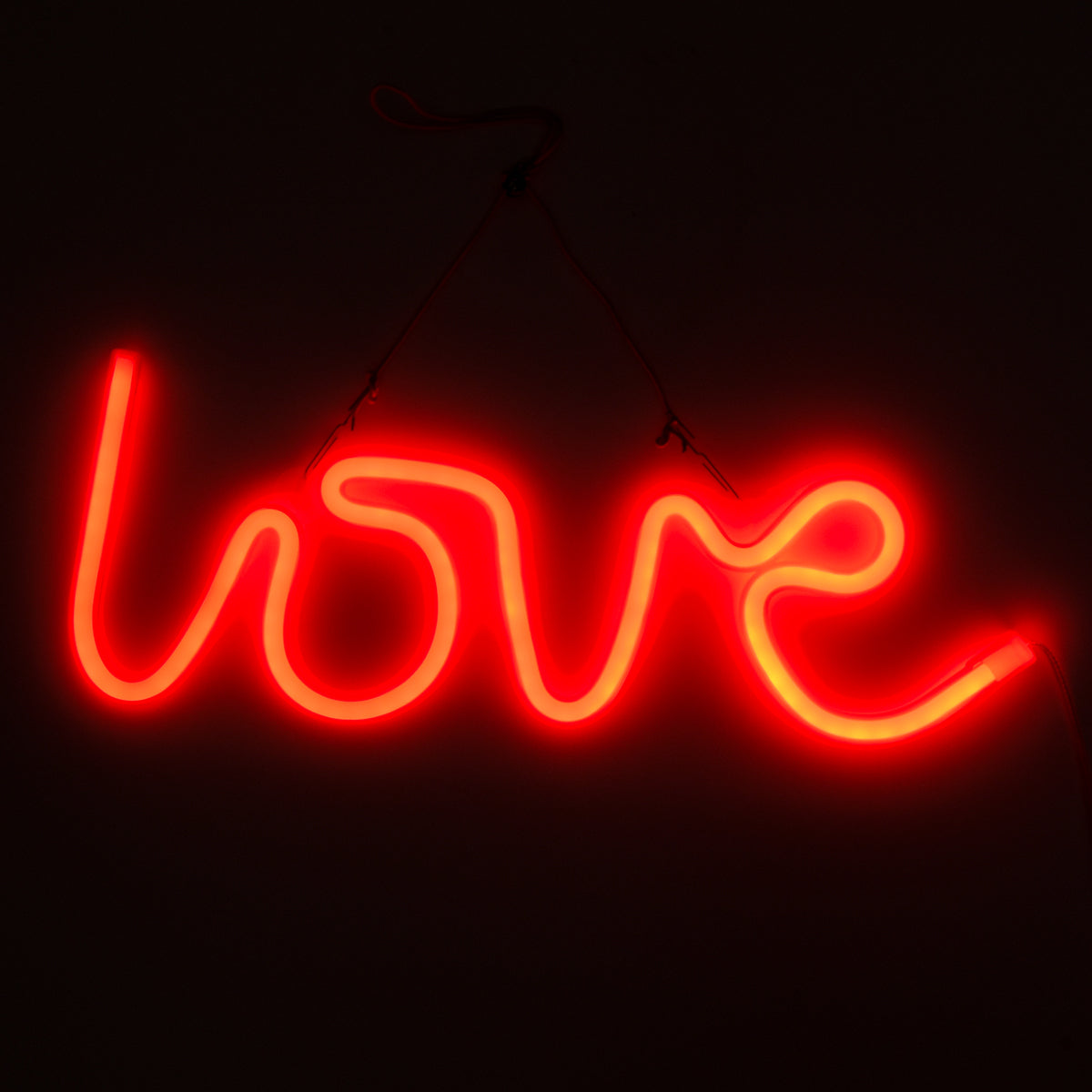 GloboStar® 78587 Φωτιστικό Ταμπέλα Φωτεινή Επιγραφή NEON LED Σήμανσης LOVE 5W με Καλώδιο Τροφοδοσίας USB - Μπαταρίας 3xAAA (Δεν Περιλαμβάνονται) - Κόκκινο