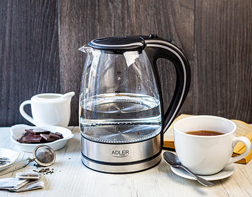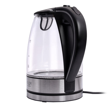 Ένας μεγάλος, ηλεκτρικός οικογενειακός βραστήρας, που σας επιτρέπει να βράζετε αποτελεσματικά νερό για τσάι για 6-7 άτομα χάρη στην ισχύ των 2200W. Εξοπλισμένο με καθαρό δείκτη στάθμης νερού, θα σβήσει αυτόματα μετά το βράσιμο. Η κλειδαριά θα σας εμποδίσει επίσης να ενεργοποιήσετε έναν άδειο βραστήρα, εξοικονομώντας έτσι ενέργεια και διασφαλίζοντας την ασφάλειά σας. Το φίλτρο ιζημάτων εξασφαλίζει την κατάλληλη ποιότητα νερού. Για ευκολία, είναι εξοπλισμένο με περιστρεφόμενη βάση, επίπεδο πάτο, θερμάστρα από ανοξείδωτο χάλυβα και λάμπα που ενημερώνει για βραστό νερό. Μαύρο και κομψό, σας επιτρέπει να βράζετε 1.7 λίτρα νερού τη φορά.