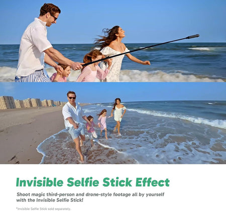 Δημιούργησε εντυπωσιακές λήψεις τρίτου προσώπου μόνος σου, χωρίς βοήθεια! Το selfie stick εξαφανίζεται αυτόματα από το βίντεο, χαρίζοντας καθαρές, επαγγελματικές λήψεις σαν να τις τράβηξε άλλος. Δεν έχεις φωτογράφο; Κανένα πρόβλημα!
