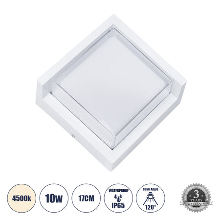 GLOBOSTAR® APEX 60772 Μοντέρνο Φωτιστικό Τοίχου - Απλίκα LED 10W 1050lm 120° AC 220-240V Αδιάβροχο IP65 Φυσικό Λευκό 4500K - Bridgelux SMD Chip - Λευκό Ματ - Μ17 x Π17 x Υ9cm - 3 Χρόνια Εγγύηση