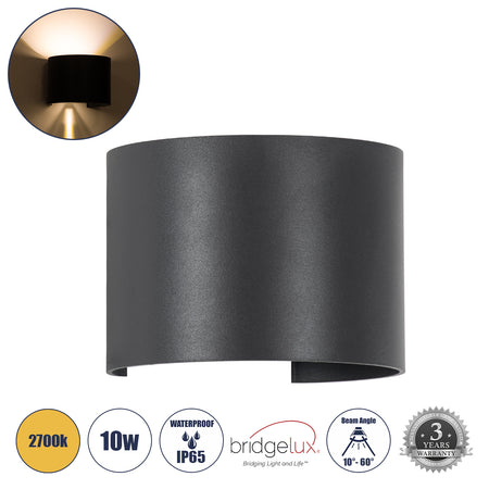 GLOBOSTAR® AXIS-R 60636 Μοντέρνο Φωτιστικό Τοίχου - Απλίκα LED 10W 1150lm 5°/60° AC 220-240V Αδιάβροχο IP65 Θερμό Λευκό 2700K - Bridgelux COB Chip & TÜV SÜD Driver - Γκρι Ανθρακί Ματ - Μ10 x Π10 x Υ10cm - 5 Χρόνια Εγγύηση
