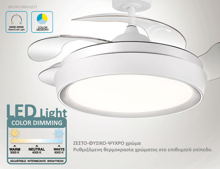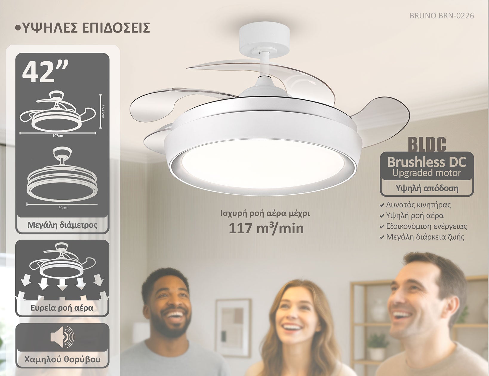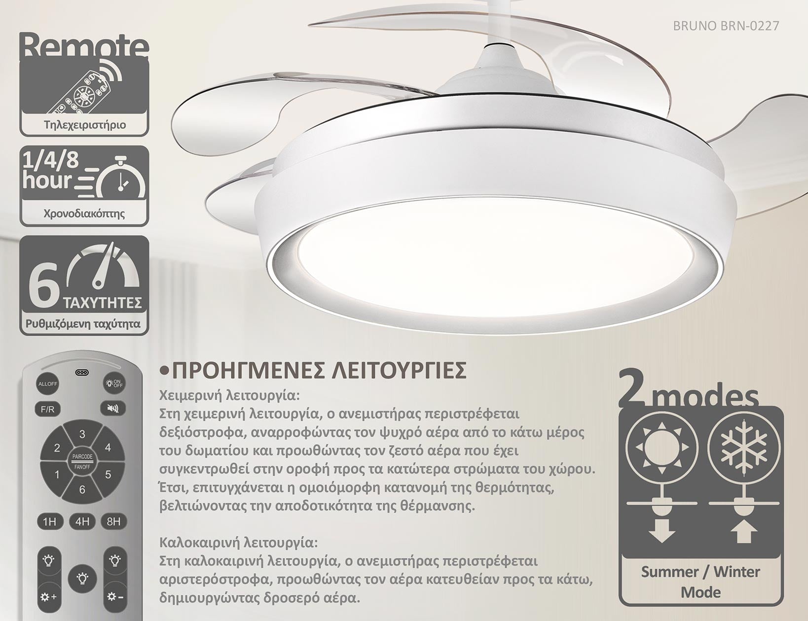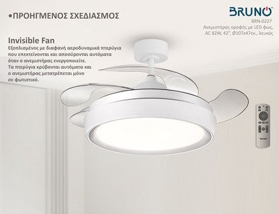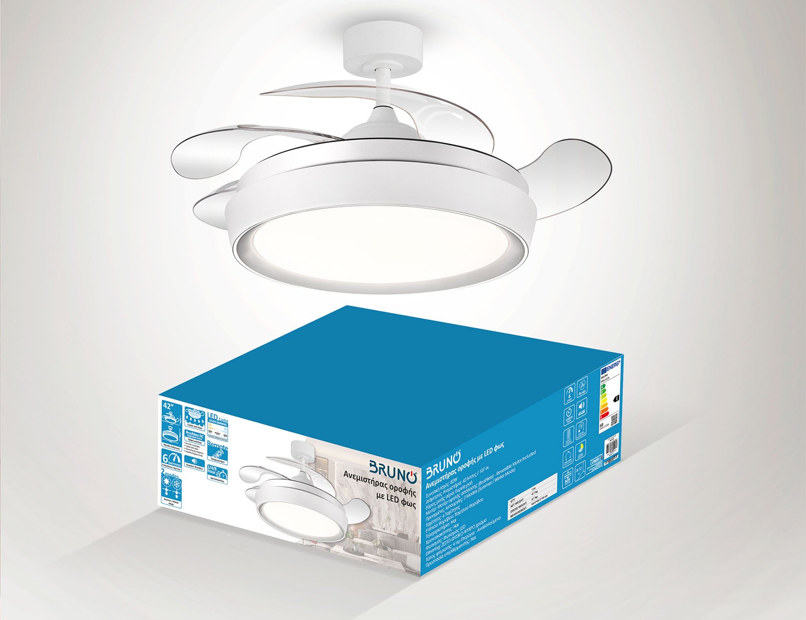 BRUNO BRN-0227 Ανεμιστήρας οροφής με LED φως, AC 82W, 42", O107x47εκ., λευκός