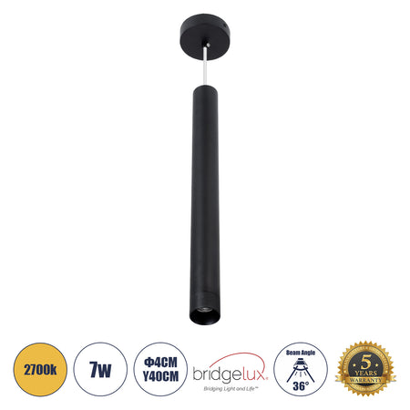 GLOBOSTAR® CANAL 60375 Μοντέρνο Κρεμαστό Φωτιστικό Οροφής LED 7W 700lm 36° AC 220-240V IP20 Θερμό Λευκό 2700K - Bridgelux COB - Μαύρο - Μ4 x Π4 x Υ40cm - 5 Χρόνια Εγγύηση