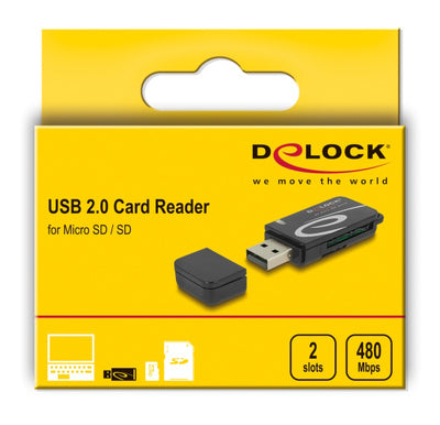 DELOCK card reader 91602 για SD & micro SD, USB, 480Mbps, μαύρο