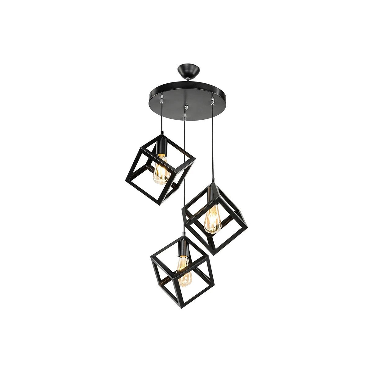 GLOBOSTAR® DISE 201-0051 Μοντέρνο Κρεμαστό Φωτιστικό Οροφής με Ντουί 3 x E27 AC 220-240V IP20 - Μαύρο - Μ48 x Π48 x Υ65cm