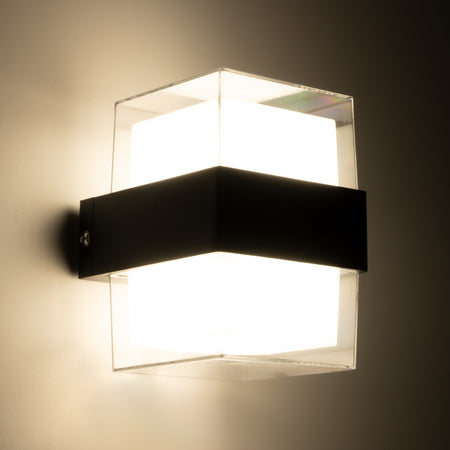 GLOBOSTAR® EMPIRE 60778 Μοντέρνο Φωτιστικό Τοίχου - Απλίκα LED 10W 1050lm 120° AC 220-240V Αδιάβροχο IP65 Φυσικό Λευκό 4500K - Bridgelux SMD Chip & TÜV SÜD Driver - Διάφανο & Μαύρο Ματ - Μ10.5 x Π9 x Υ13cm - 3 Χρόνια Εγγύηση