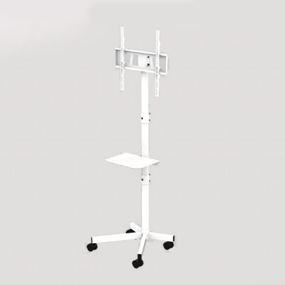 Η στιβαρή μεταλλική κατασκευή της σε λευκό χρώμα, προσθέτει μια μοντέρνα και κομψή πινελιά στον χώρο. Διαθέτει ανθεκτικές τροχούς με μηχανισμό ασφάλισης, για εύκολη μετακίνηση και σταθερή τοποθέτηση, καθώς και ενσωματωμένο ράφι για συσκευές ή υλικά παρουσίασης.