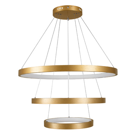 GLOBOSTAR® NEMESIS TRIO 61172 Μοντέρνο Κρεμαστό Φωτιστικό Οροφής LED 120W 14723lm 360° AC 220-240V IP20 Ρυθμιζόμενο Λευκό CCT με Χειριστήριο από 2700K έως 6000K Dimmable - Lumileds SMD Chip - Χρυσό Βούρτσας - Μ80 x Π80 x Υ80cm - 3 Χρόνια Εγγύηση