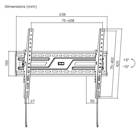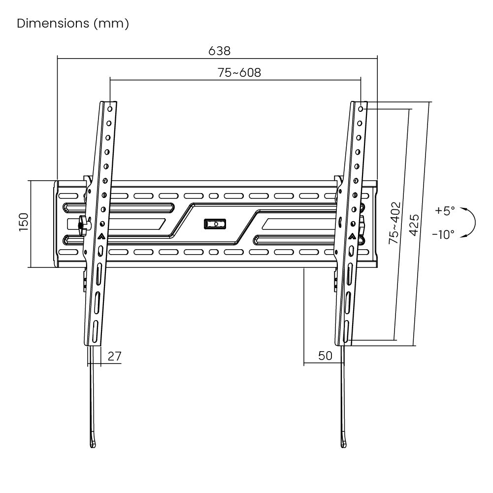 POWERTECH επιτοίχια βάση PT-1370 για τηλεόραση 37-86", έως 75kg, ρυθμιζόμενη κλίση