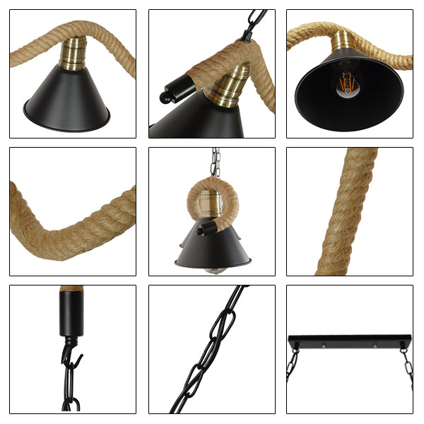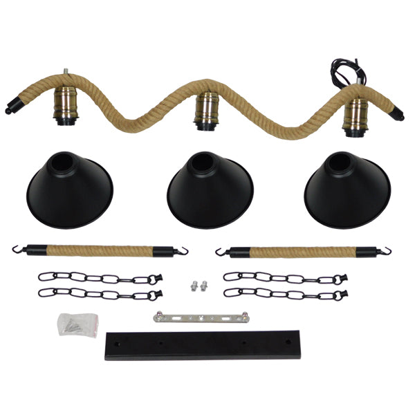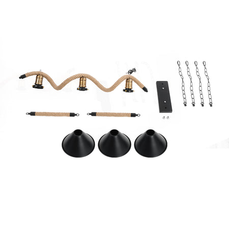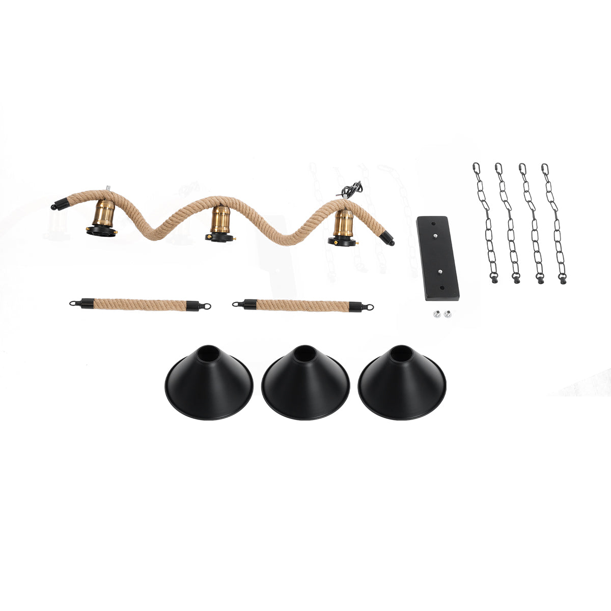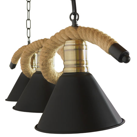 GLOBOSTAR® TYMEN 01189 Boho Κρεμαστό Φωτιστικό Οροφής με Ντουί 3 x E27 AC 220-240V IP20 - Μαύρο & Μπεζ - Μ85 x Π18.5 x Υ20cm