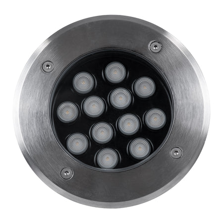 GLOBOSTAR® UNDERGROUND-TINA 90667 Χωνευτό Αρχιτεκτονικο Φωτιστικό Σποτ Δαπέδου LED 12W 1320lm 30° DC 24V Αδιάβροχο IP68 Θερμό Λευκό 2700K Dimmable - Ανοξείδωτο Ατσάλι 304 - Φ16 x Υ9cm / Q14cm - 3 Χρόνια Εγγύηση