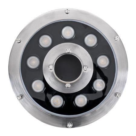GLOBOSTAR® UNDERWATER-FINA 90674 Υποβρύχιος Προβολέας Σποτ για Σιντριβάνια/Πισίνες LED 9W 990lm 30° DC 24V Αδιάβροχο IP68 Θερμό Λευκό 2700K Dimmable - Ανοξείδωτο Ατσάλι 304 - Φ16 x Υ8cm - 3 Χρόνια Εγγύηση