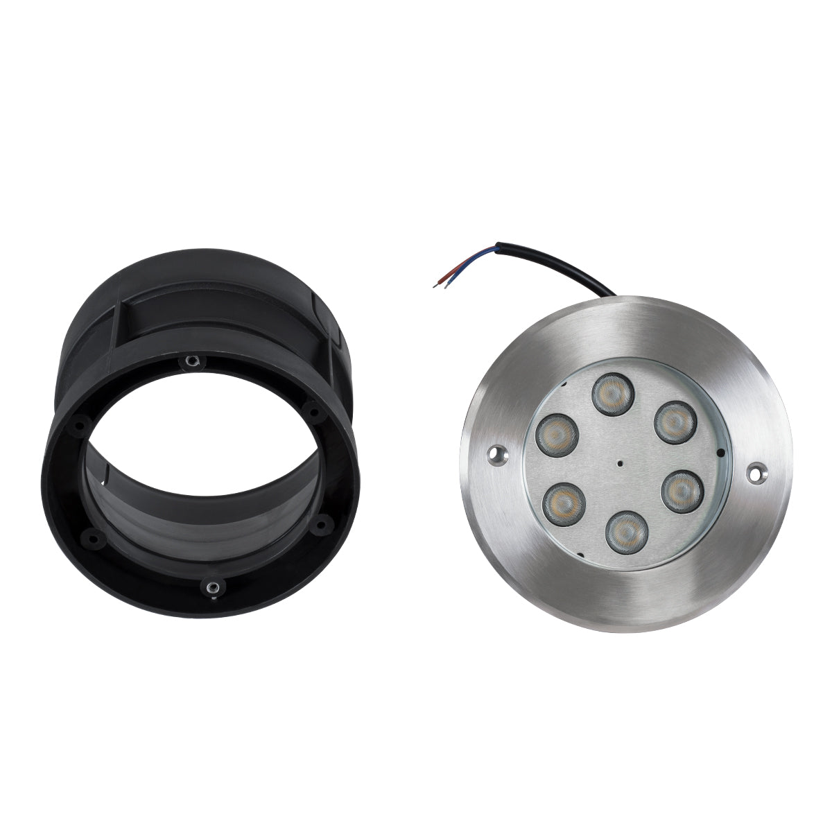 GLOBOSTAR® UNDERWATERYUNI 90417 Υποβρύχιο Χωνευτό Σποτ για Σιντριβάνια/Πισίνες LED 6W 540lm 30° DC 24V Αδιάβροχο IP68 Θερμό Λευκό 2700K Dimmable - Bridgelux SMD Chip - Ανοξείδωτο Ατσάλι 304 - Μ15 x Π15 x Υ10cm / Q14cm - 3 Χρόνια Εγγύηση