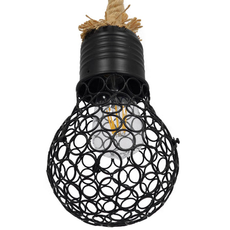 GloboStar® URBAN 01521 Vintage Industrial Κρεμαστό Φωτιστικό Οροφής Μονόφωτο Μαύρο Μεταλλικό Πλέγμα με Μπεζ Σχοινί Φ15 x Υ25cm