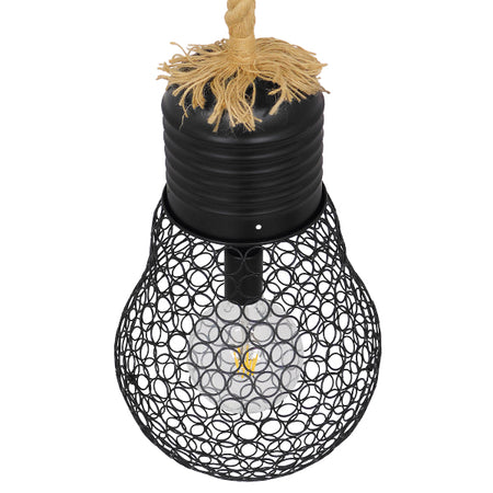 GloboStar® URBAN 01522 Vintage Industrial Κρεμαστό Φωτιστικό Οροφής Μονόφωτο Μαύρο Μεταλλικό Πλέγμα με Μπεζ Σχοινί Φ28 x Υ40cm