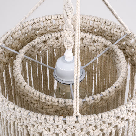 GLOBOSTAR® ZAMBIA 36208 Boho Κρεμαστό Φωτιστικό Οροφής με Ντουί 1 x E27 AC 220-240V IP20 - Μπεζ - Μ30 x Π30 x Υ60cm