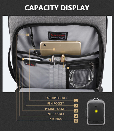 ARCTIC HUNTER τσάντα πλάτης B00227L με θήκη laptop 17", 41L, USB, μαύρη
