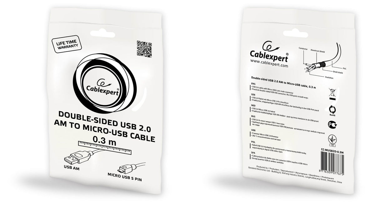 Cablexpert Double Sided Usb 2.0 Am To Micro Usb Cable 1 M Black