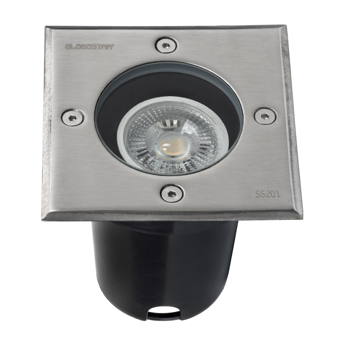 GLOBOSTAR® GIGO 60362 Χωνευτό Φωτιστικό Δαπέδου Σποτ για Λάμπα MR16 με Ντουί 1 x GU10 AC 220-240V Αδιάβροχο IP68 IK09 - Ανοξείδωτο Ατσάλι SS201 - Μ11 x Π11 x Υ11.5cm / Q10.4 X 10.4cm