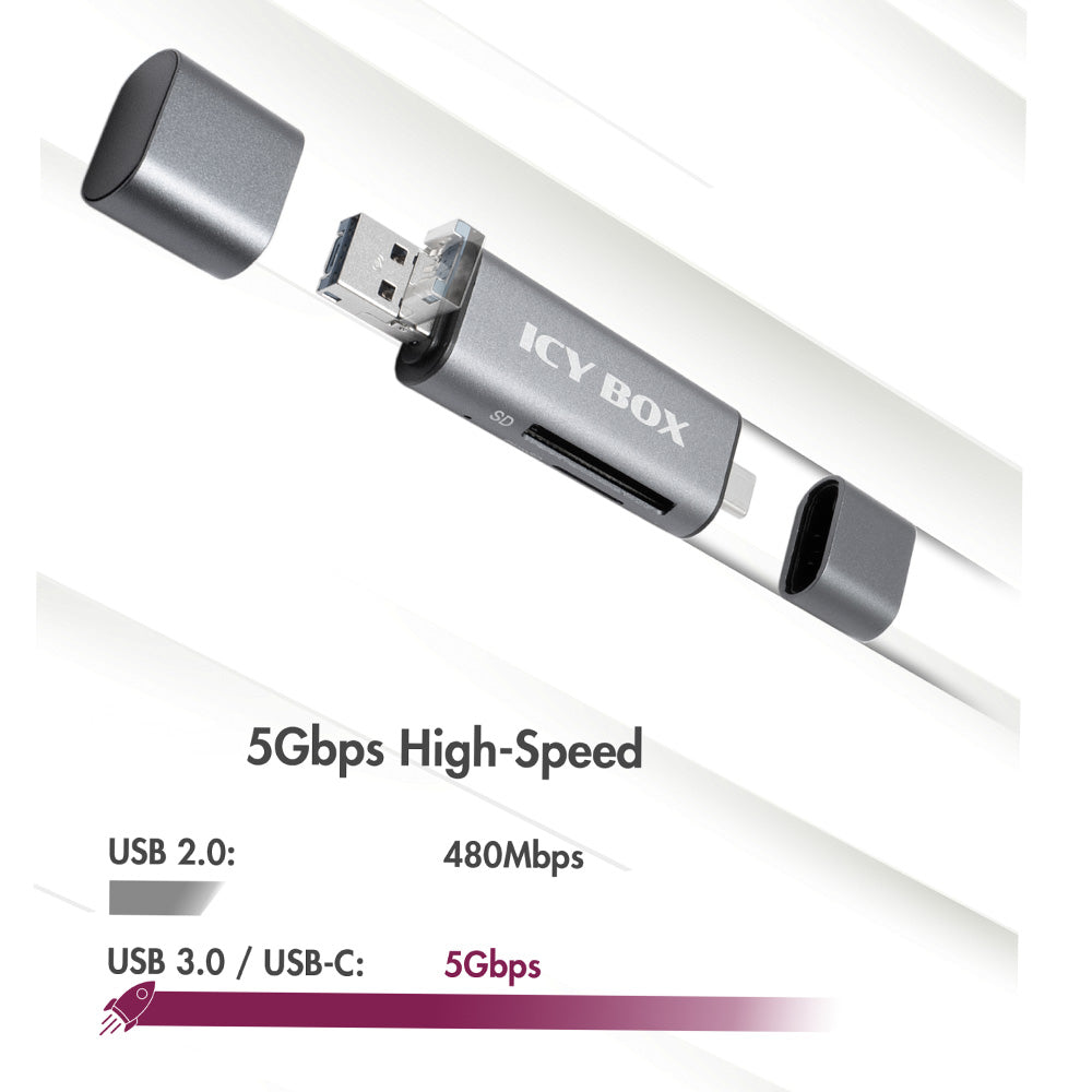 Ο ICY BOX OTG USB 3.2 Card Reader συνδυάζει ταχύτητα, ευελιξία και συμπαγή σχεδιασμό, για να καλύψει τις ανάγκες μεταφοράς δεδομένων σας όπου κι αν βρίσκεστε