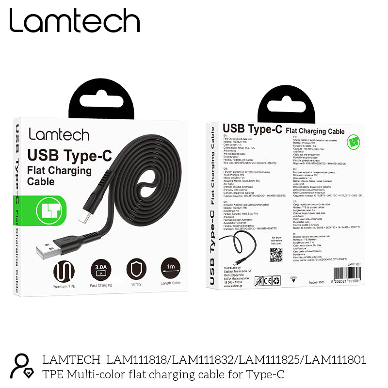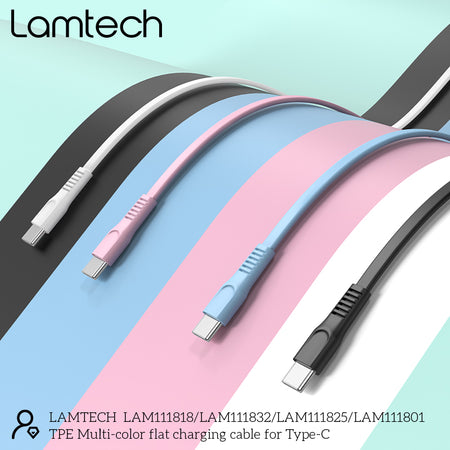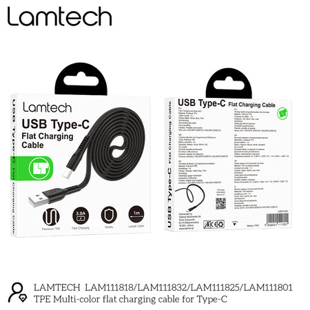 Lamtech Type C 3.0 A Flat Charging Cable 1 M Black