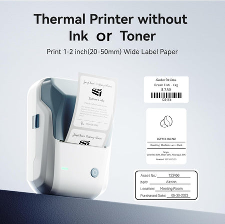 Εύρος Μεγέθους Ετικετών: Υποστηρίζει ετικέτες με πλάτος 20mm-50mm (1-2 ίντσες), με ενεργό πλάτος εκτύπωσης 48mm. Συμπεριλαμβάνεται ρολό ετικετών (2x1,18 ίντσες, 50x30 mm) με 230 ετικέτες ανά ρολό.