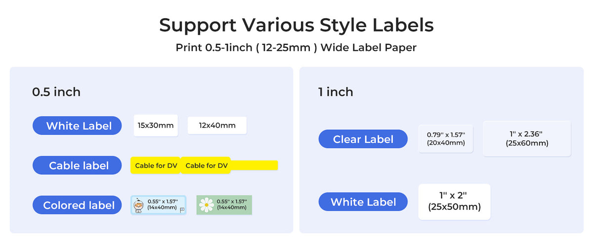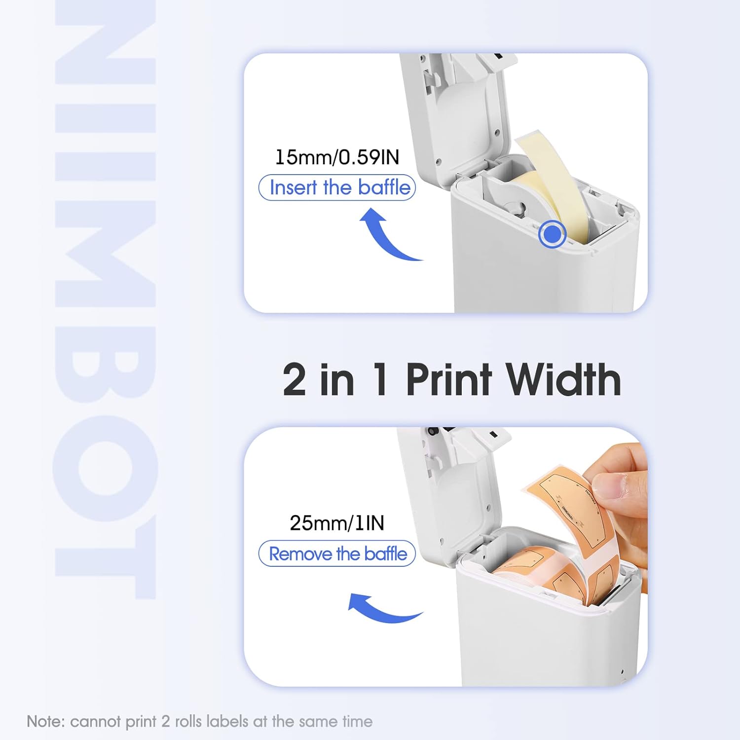 • 2 σε 1 Ετικετογράφος: Ο ετικετογράφος NIIMBOT D101 υποστηρίζει ετικέτες πλάτους από 0.4'' έως 1'' με αφαιρούμενο διαχωριστή. Μπορείτε να εκτυπώσετε ετικέτες 0.5 ιντσών για ονόματα, διακόπτες και καλώδια με τον διαχωριστή, ή να εκτυπώσετε ετικέτες τιμών ή προϊόντων 1 ιντσάς αφαιρώντας τον διαχωριστή. Σημείωση: Ο εκτυπωτής δεν μπορεί να εκτυπώσει δύο ρολά ετικετών ταυτόχρονα.