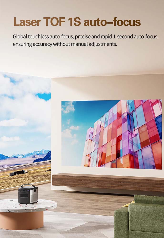 Μέγεθος Προβολής: Από 30 έως 200 ίντσες, επιτρέποντας την προσαρμογή του μεγέθους της οθόνης ανάλογα με τις ανάγκες σας.
