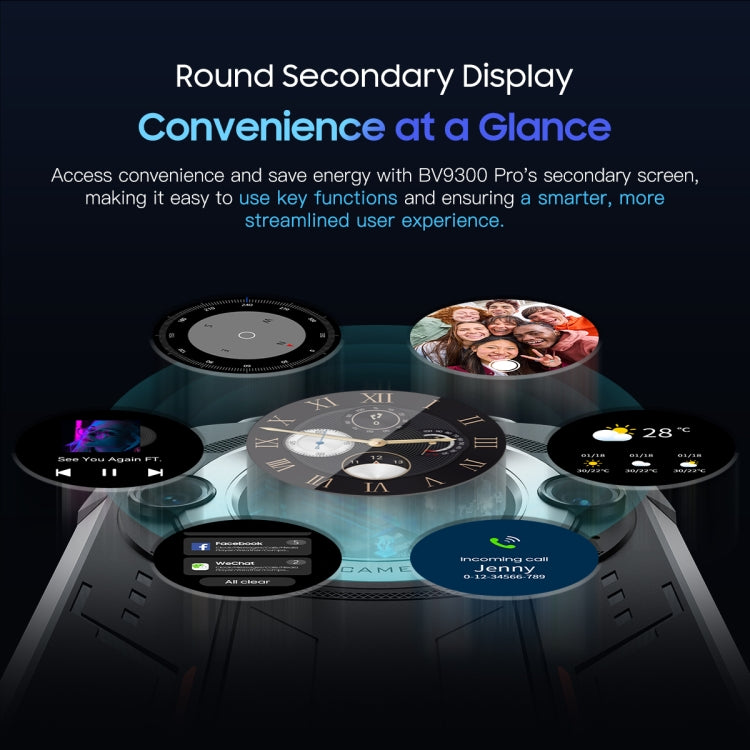 Αποκτήστε πρόσβαση στην ευκολία και εξοικονομήστε ενέργεια με τη δευτερεύουσα οθόνη του BV9300 Pro, διευκολύνοντας τη χρήση των βασικών λειτουργιών και διασφαλίζοντας μια πιο έξυπνη, πιο βελτιωμένη εμπειρία χρήστη.