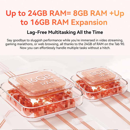 128GB ROM, το Tab 90 σας προσφέρει άφθονο χώρο για να αποθηκεύσετε φωτογραφίες, βίντεο, και εφαρμογές. Επιπλέον, μπορείτε να επεκτείνετε την αποθηκευτική χωρητικότητα με κάρτα microSD έως