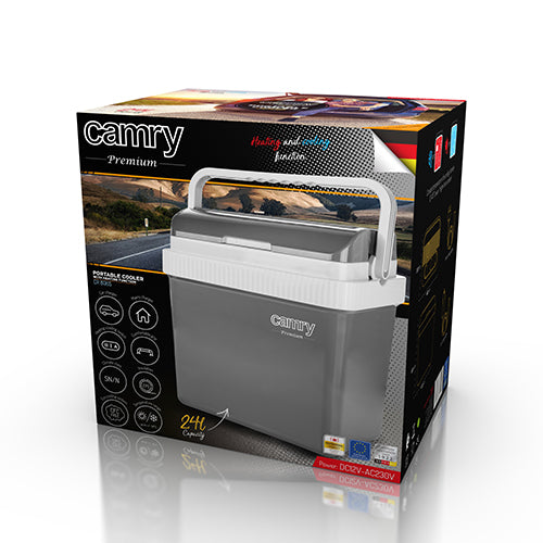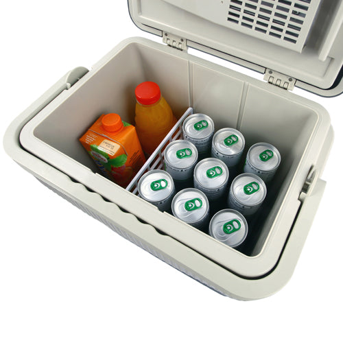 Φτιαγμένο για ταξιδιώτες που ακόμη και όταν κάνουν κατασκήνωση θέλουν να πίνουν μαζί τους μερικά δροσερά ποτά. Το φορητό ψυγείο αυτοκινήτου έχει χωρητικότητα 24l. Κλείνει με εύχρηστα μάνδαλα για σταθερό κλείδωμα του καπακιού. Χάρη στην ειδική θερμομόνωση του περιβλήματος του είναι δυνατή η διατήρηση σταθερής θερμοκρασίας. Υπάρχει μια εργονομική, πτυσσόμενη λαβή εγκατεστημένη που μπορεί να κρυφτεί στο καπάκι της θερμοσακούλας. Όταν είναι κλειστό, το ψυγείο και ο θερμαντήρας του αυτοκινήτου γίνεται μια εύχρηστη λευκή θήκη τόσο όμορφη όσο και βολική στη μεταφορά.