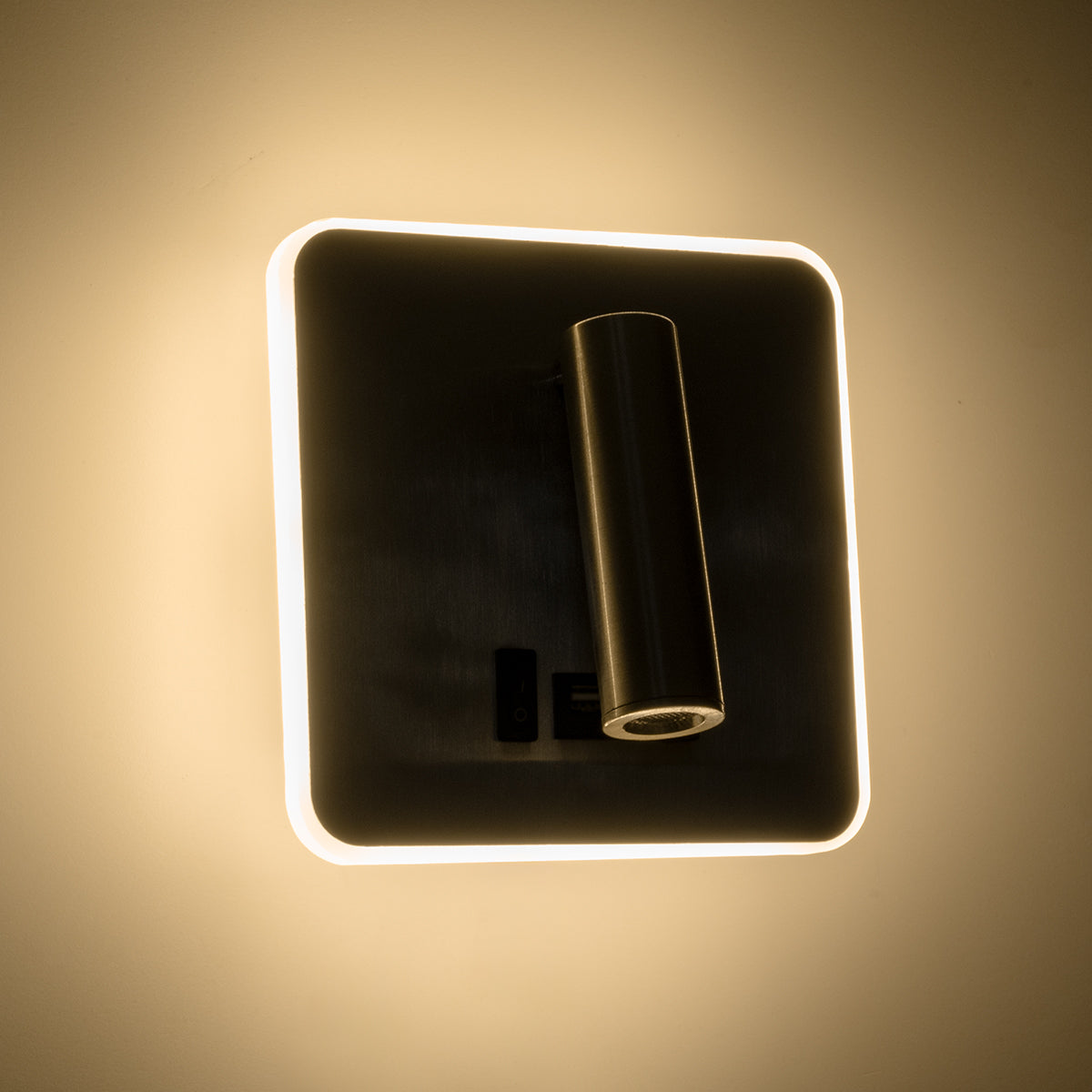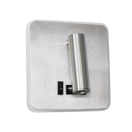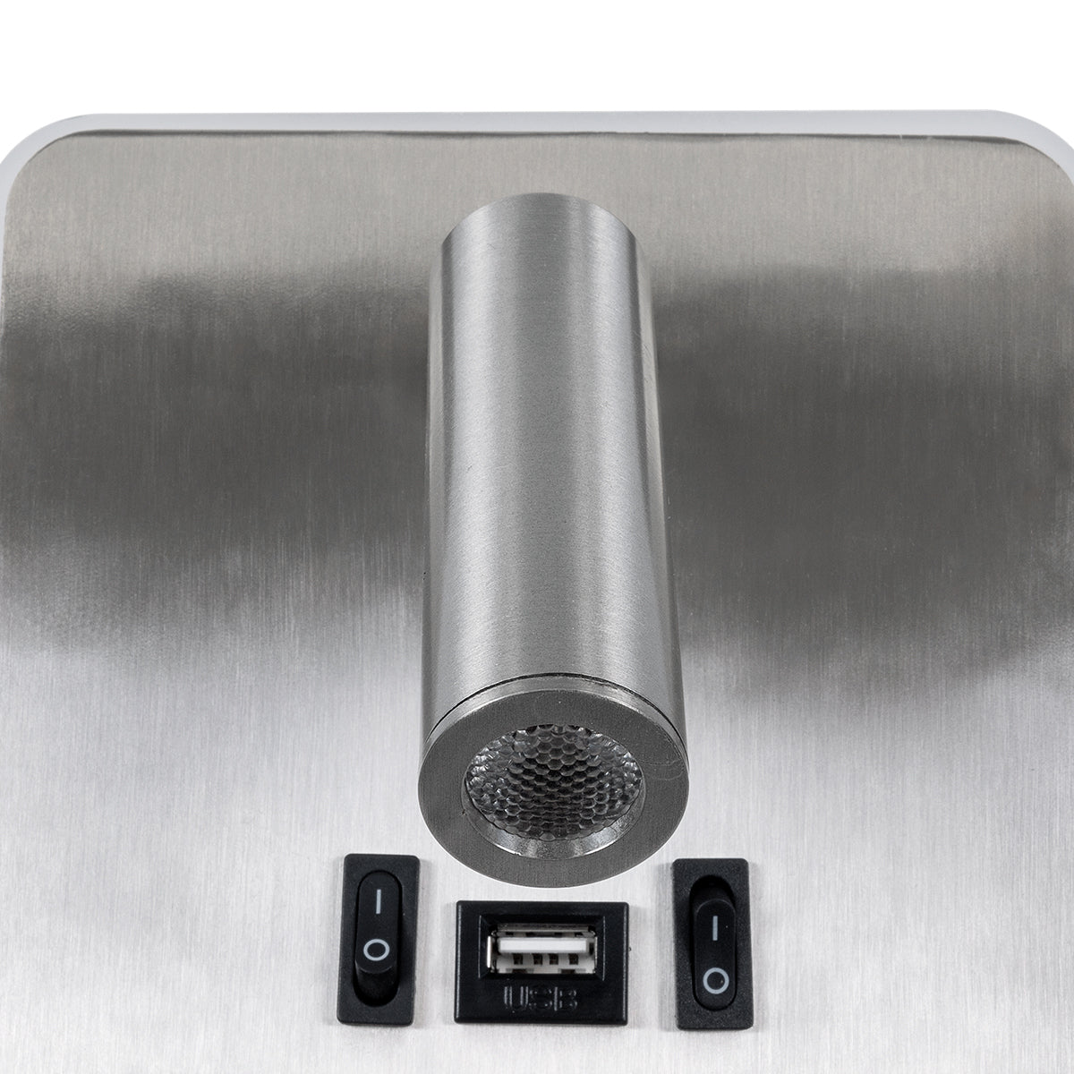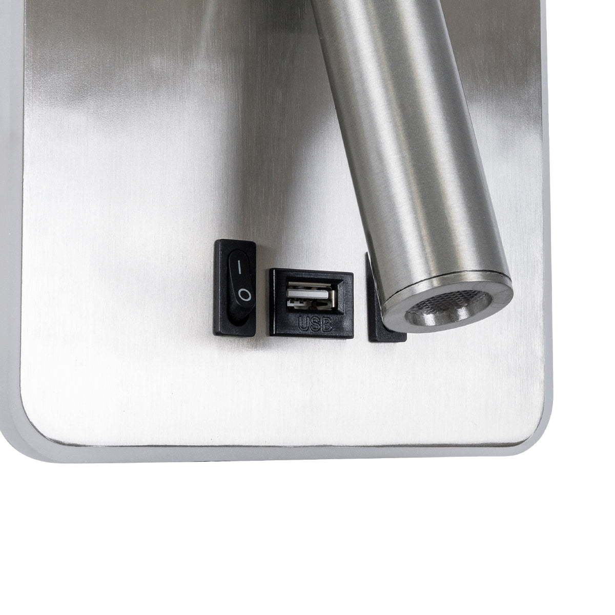 GLOBOSTAR® LADY-S 60945 Μοντέρνο Φωτιστικό Τοίχου - Απλίκα Ξενοδοχείου Reading Light με Φορτιστή USB 3A LED 6W 600lm 36° & 360° AC 220-240V IP20 Φυσικό Λευκό 4500K - Bridgelux COB Chip & TÜV SÜD Driver - Νίκελ Βούρτσας - Μ15 x Π15 x Υ7cm - 3 Χρόνια Εγγ...